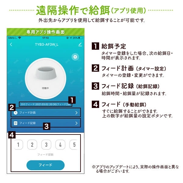 ■タイマー機能で回数・給餌量も設定可能。